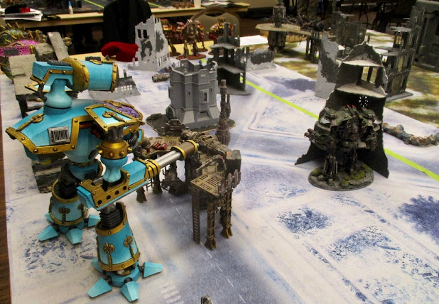 Oh, yeah, and some dude from Regina drove up for the day and brought along his Foregeworld WARLORD TITAN!!! It was pretty insane looking. I'd kind of wanted to see if I could set up my titans with it to get some comparison shots, but he ended his last game before us and put it away...