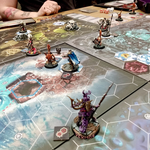 Skolko and Pronk had briefly run off into the Soul Refractor board to score a Glory Point from an objective card... and there was NOTHING ELSE TO DO... so returned to fight Hexbane... as that was the ONLY way I could possibly score ANY more points...