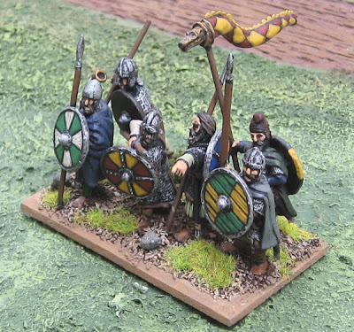 General Element and Huscarls for the Anglo-Danish (all Blade). This General stand also has spears to remind myself that this is the General for the Anglo-Danish I painted the Generals shield to look like a modern Danish flag.